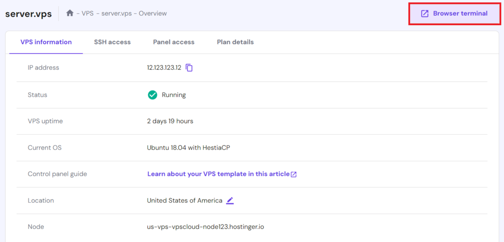 To use these commands for VPS management, connect to your remote server using an SSH client, Terminal, or Hostinger’s Browser terminal. Then, execute the commands from the application.