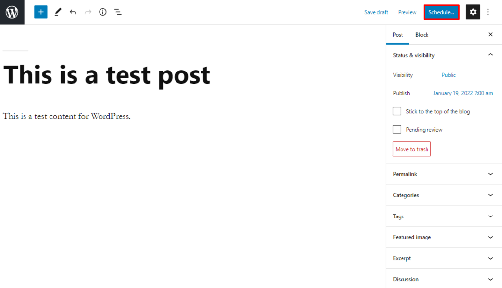 WordPress has a built-in scheduling tool in both the Block and Classic editor. Here are the steps to schedule a blog post using the tool.