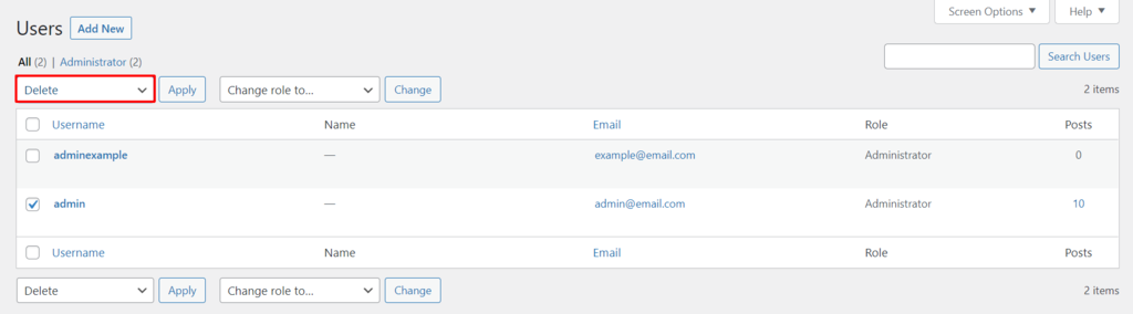After creating a new WordPress admin username, you’ll need to delete your old admin username. Here are the steps to do so: