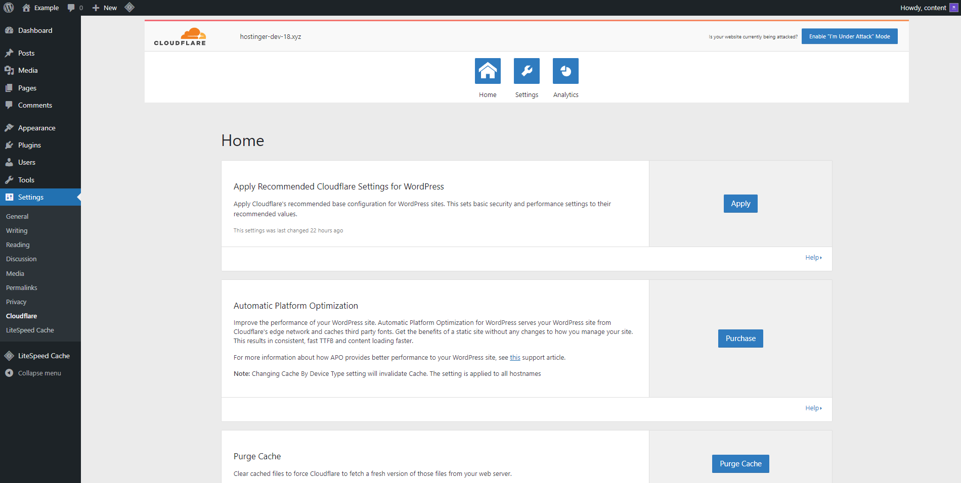 Head to your WordPress dashboard to continue configuring Cloudflare: