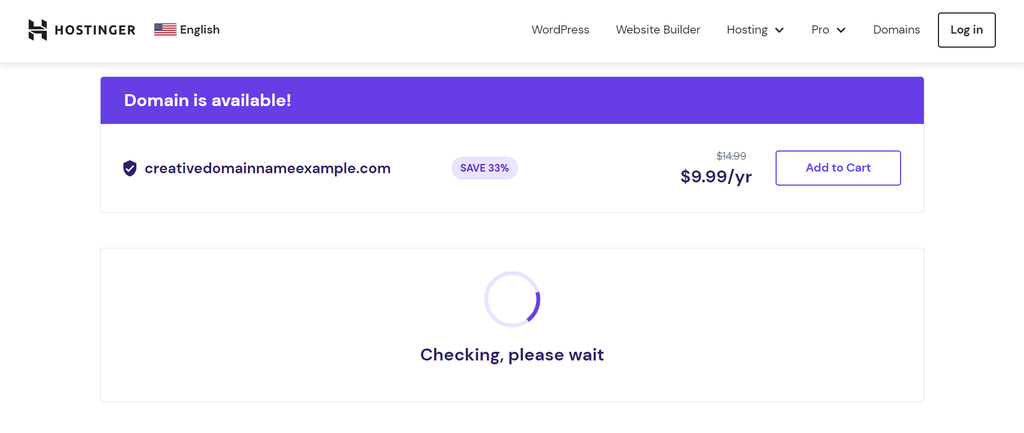 Example of an immediate feedback in the form of a loading indicator on Hostinger's domain checker