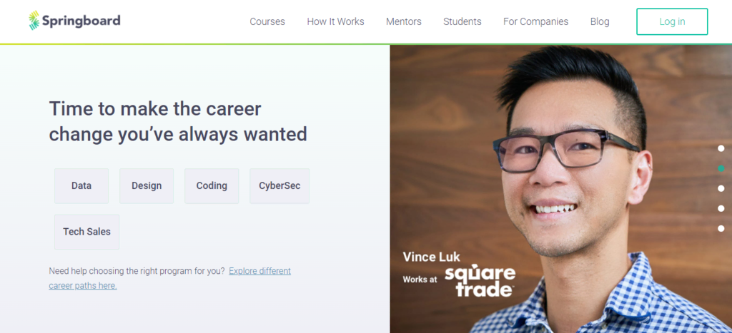 Although its courses are paid, it has a free coding camp people can sign up for by creating a Skillcrush account. Those wanting to learn specific skills can enroll in specialization courses. The prices of the courses vary, and they all come with a 14-day money-back guarantee. The Break Into Tech program is available for those wanting to switch to a tech job.