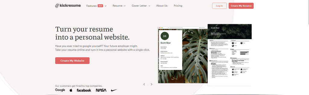 If you’re looking for the best website builder for a personal website that also serves as an online resume, check out Kickresume. This website builder extracts information from a resume created on their platform and imports it to a pre-built template, generating an online CV in minutes.