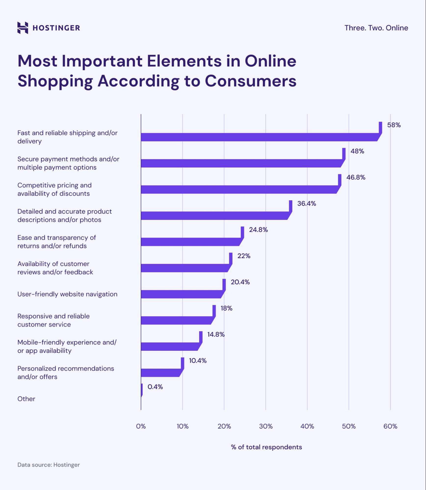 Our data shows that 58% of consumers consider fast and reliable shipping the most important factor when shopping online.