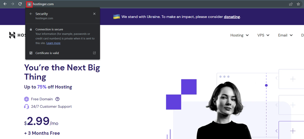 When your website has an SSL certificate, the browser will display a padlock icon next to the site’s URL – visitors can click on it to view the certificate details.