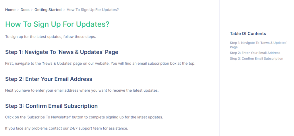 • The basic layout may be better suited for internal rather than public-facing knowledge bases.