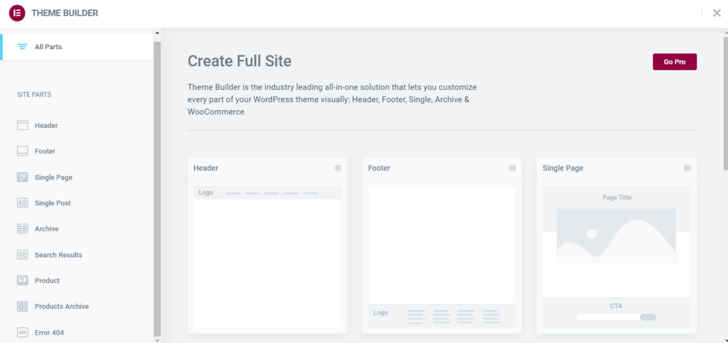 Note that if you use Elementor Pro, you’ll also get access to the Theme Builder: