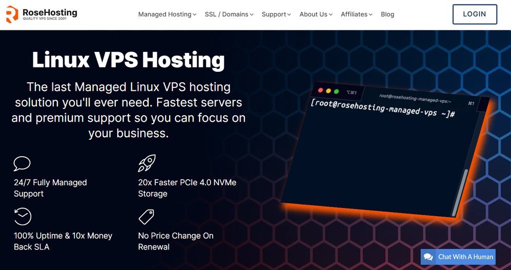Even though we provide self-managed VPS hosting services, our Customer Success Team is available 24/7 via live chat for any general inquiries. We also offer 30-day money-back and 99.9% uptime guarantees for all plans.
