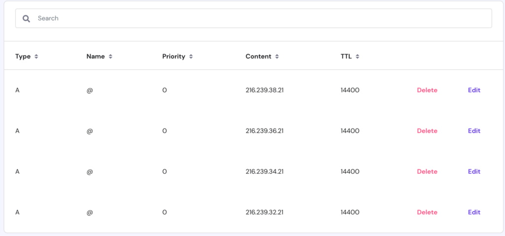 Hi there! In case you need A records, you should add 4, each pointing to these IPs -> 216.239.32.21, 216.239.34.21, 216.239.36.21, 216.239.38.21. You can also find the detailed explanation in step 2 of this tutorial :)