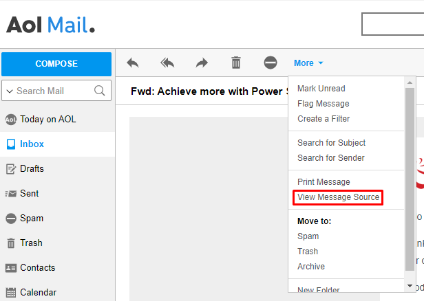 Different versions might have slightly different steps. However, the primary purpose is still to view the HTML source. Follow the steps below to view your internet headers using the most recent version, Office 365: