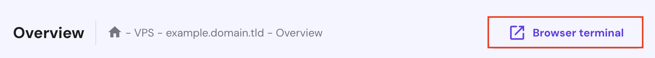 To access it, click Browser terminal in your VPS dashboard. Then, log in using your SSH credentials and start executing the commands.