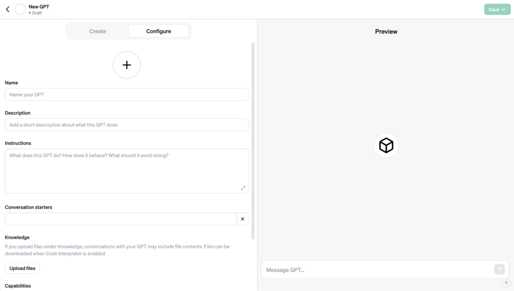 Use ChatGPT’s data upload feature to train your GPT with your specific data. This is essential for more personalized interactions, helping your GPT answer questions and execute particular tasks with better accuracy.