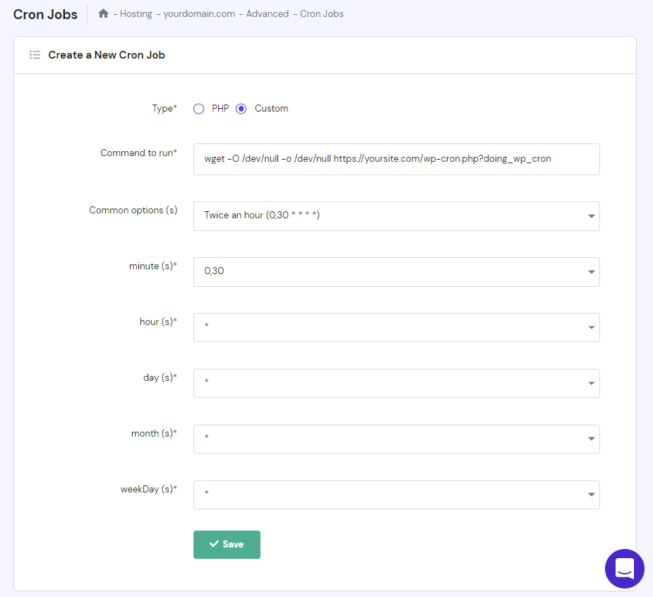 Follow these steps to set up a real cron job via hPanel:
