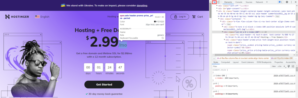 You can use Inspect Element to change, delete, or hide site content and check CSS classes. We recommend clearing the browser cache regularly to ensure you’re viewing the original appearance of the web page.