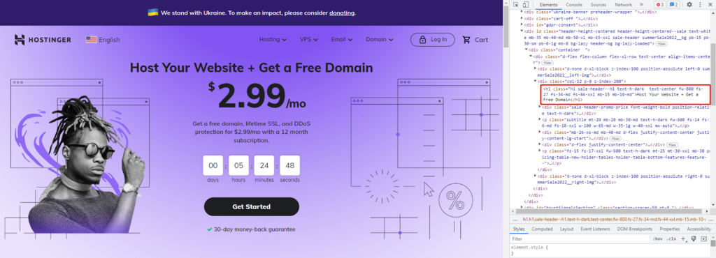 Access a website. In this case, we’re going to use hostinger.com.