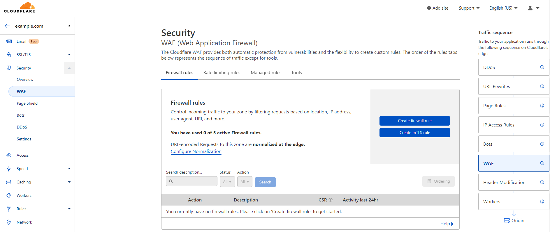 The Web Application Firewall (WAF) is one of Cloudflare’s security features that helps block potential online attacks and provide DDoS protection.