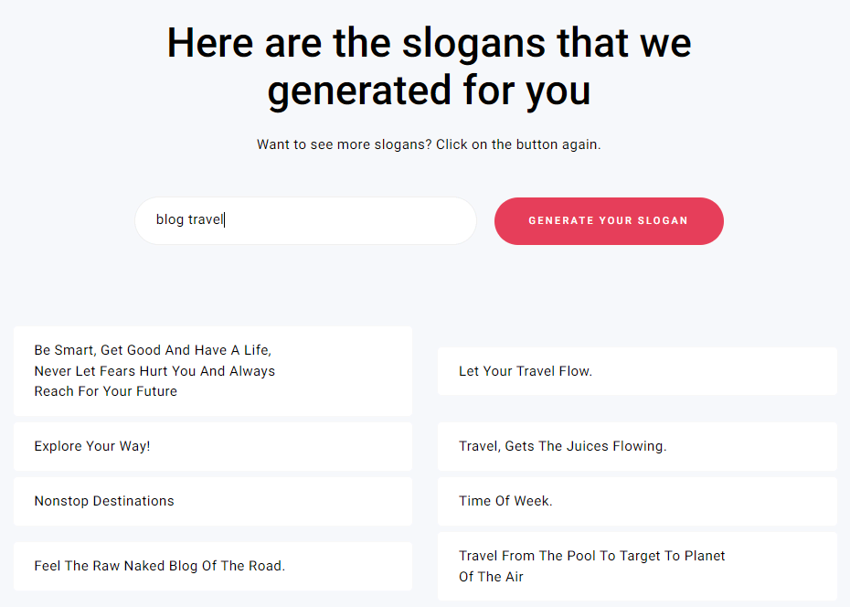 The process of making a travel blog slogan is similar to creating its name. However, a tagline allows you to use more words, giving them more room for experimentation.
