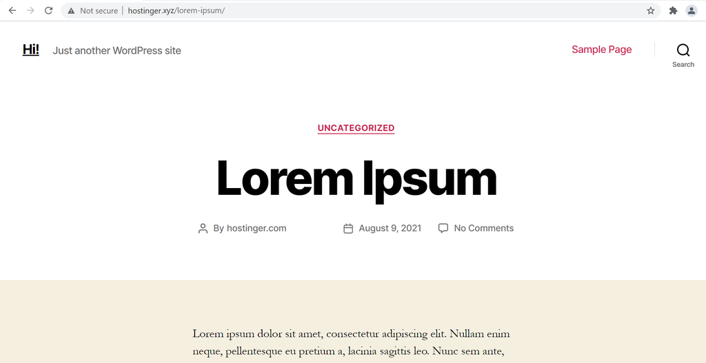 The appearance of a WordPress site's homepage using the Twenty Nineteen theme.
