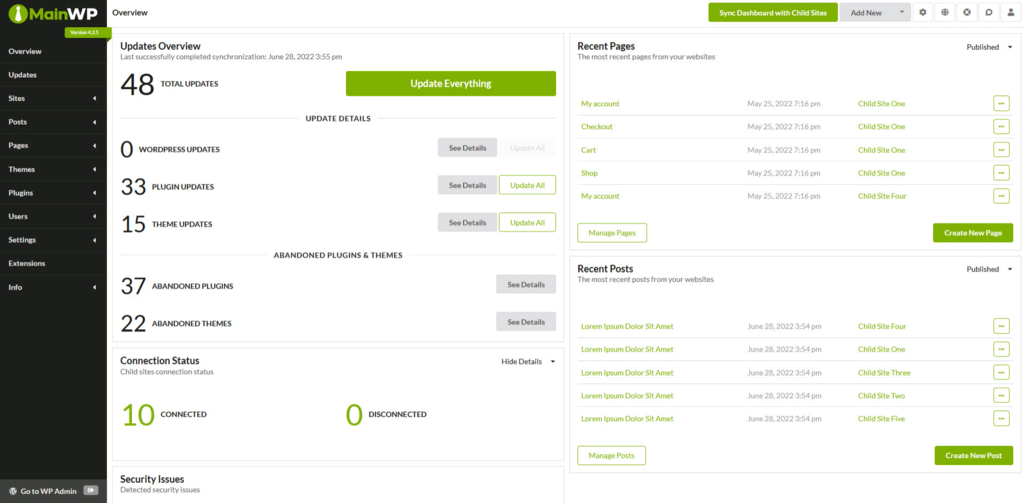 Once done, you will be able to track and manage all your Child sites from the admin site’s dashboard.
