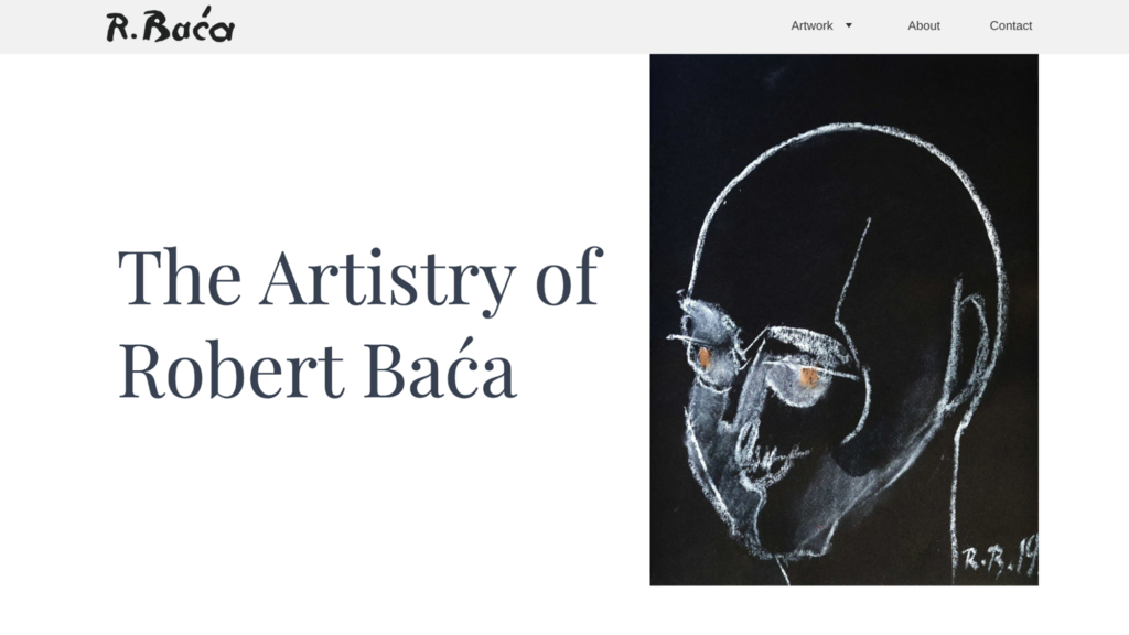 Robert Baća’s compelling resume site is built around a visually rich gallery layout that showcases the author’s diverse artistic works. The site also has intuitive navigation and responsive design, resulting in a site that’s both an artistic showcase and an easily accessible platform for viewers.