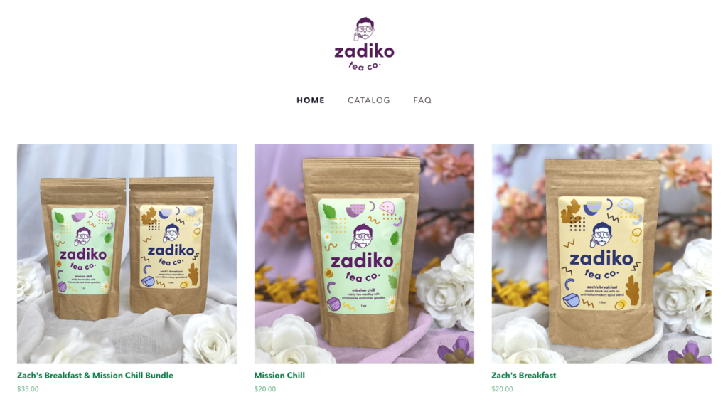 Zadiko is a tea company started by YouTuber Zach Kornfeld. He works with the manufacturer Art of Tea to create unique tea blends for his products and uses his own branding on his sales channels.