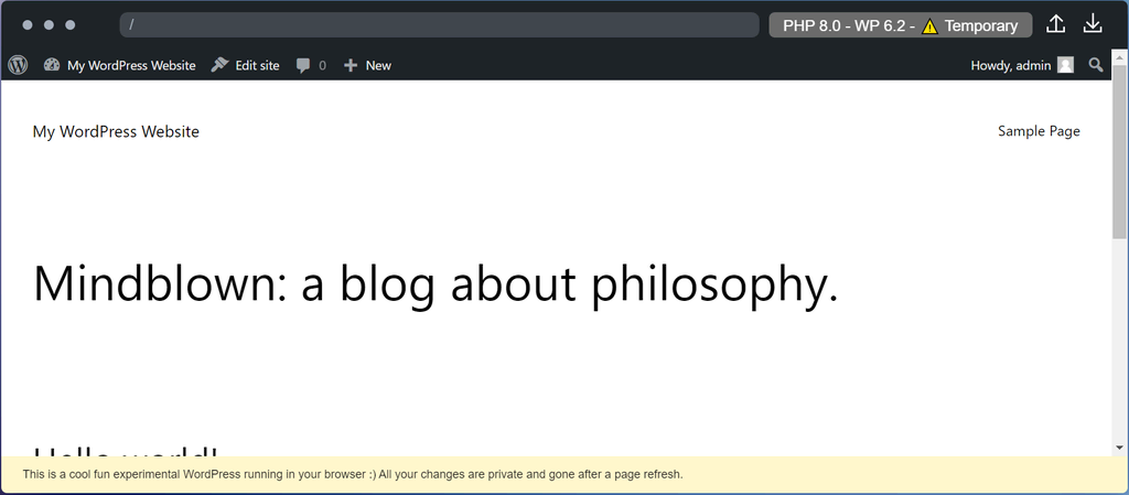 The default WordPress Playground site