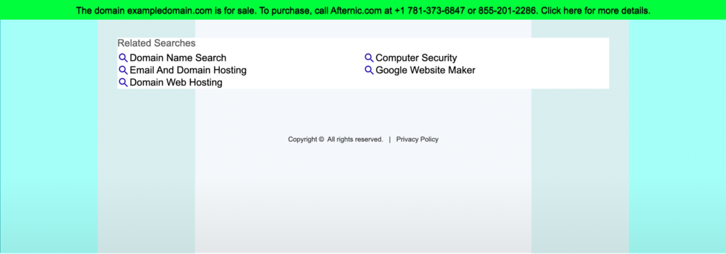 Some domain names are bought out to be resold later for a higher price. In such cases, the existing site will state the domain’s availability for sale and provide the owner’s contact information right away, like in the example below.