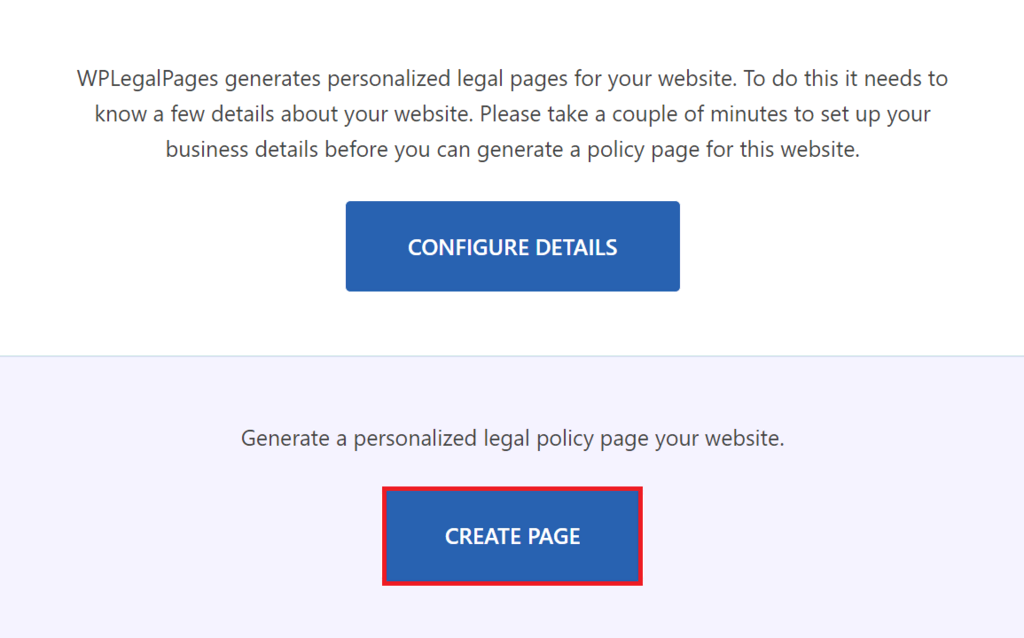 Starting the privacy policy creation with WPLegalPages