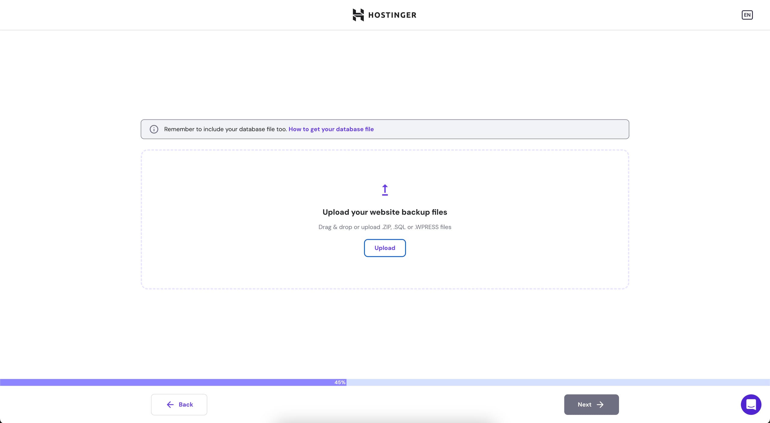 Upload your website backup files (don’t forget the database file)