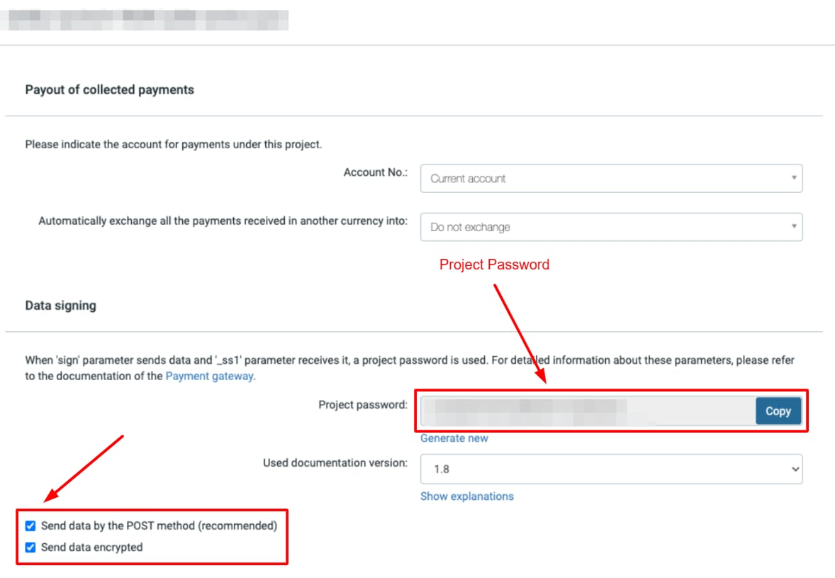 After these values are saved in our system, access your editor and publish the website so that Paysera could verify the ownership of the website. You will find these project details in the image below: