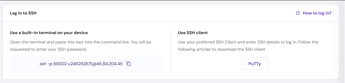 For a detailed guide on how to use PuTTy, refer here: How to Use PuTTY SSH Client on Windows, Mac and Linux 💡