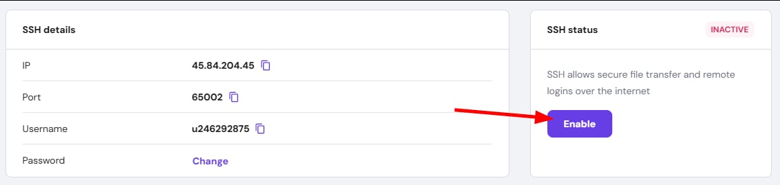 If you have a Web Single hosting plan and want to enable SSH access, you can consider an upgrade 🚀