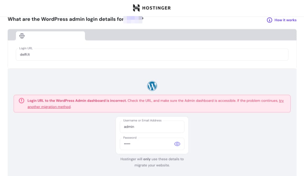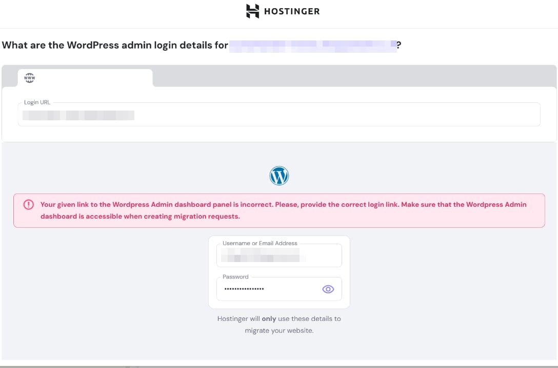 Error Message: “Login URL to WordPress admin dashboard is incorrect.”