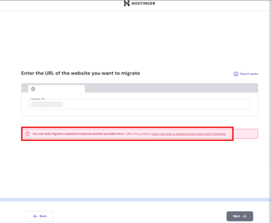 Error Message: “You can only migrate a website hosted on another provider here.”