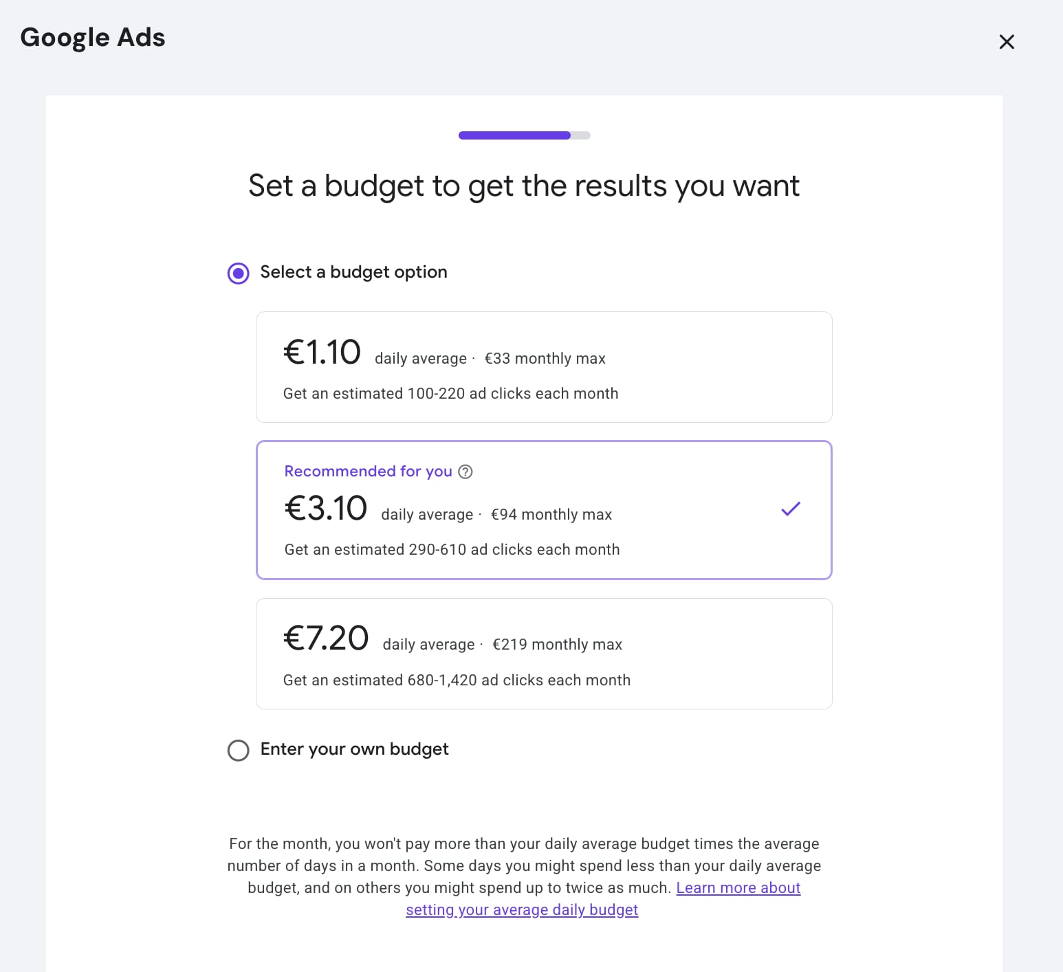 13. Set a budget to get the results you want by following recommendations or adding your own: