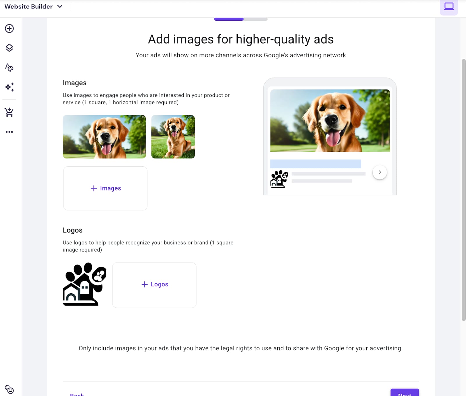 10. Make sure you add images and logo, representing your business. If you do not have your business logo, feel free to use Hostinger AI logo generator: