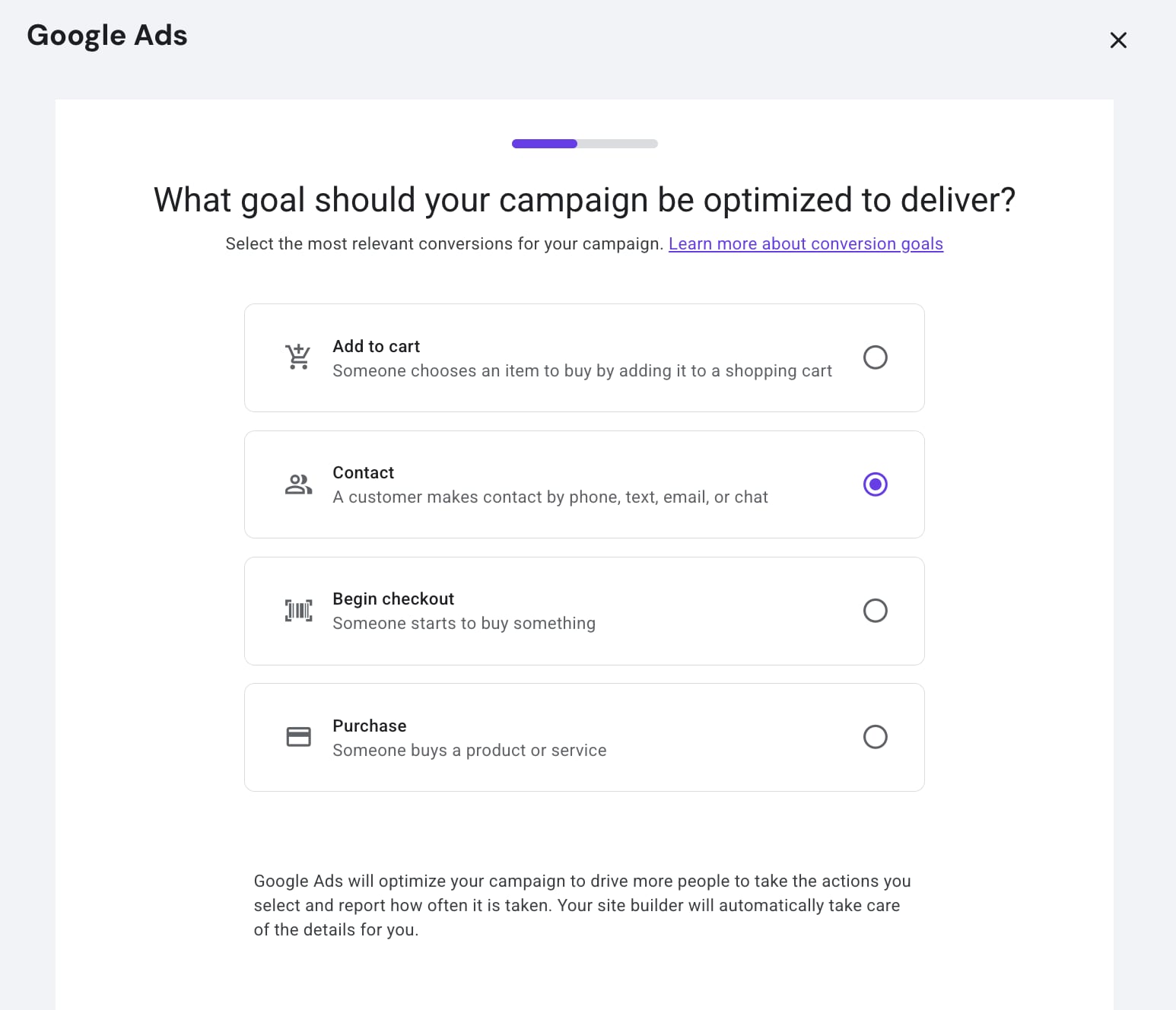 8. Select your campaign goals. More details on how to correctly set goals can be found here: