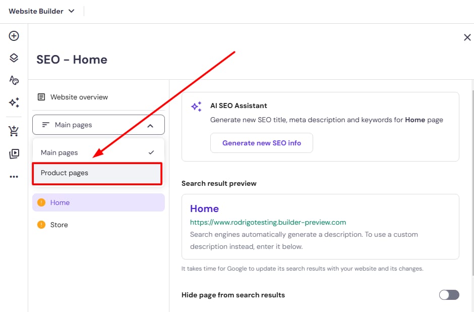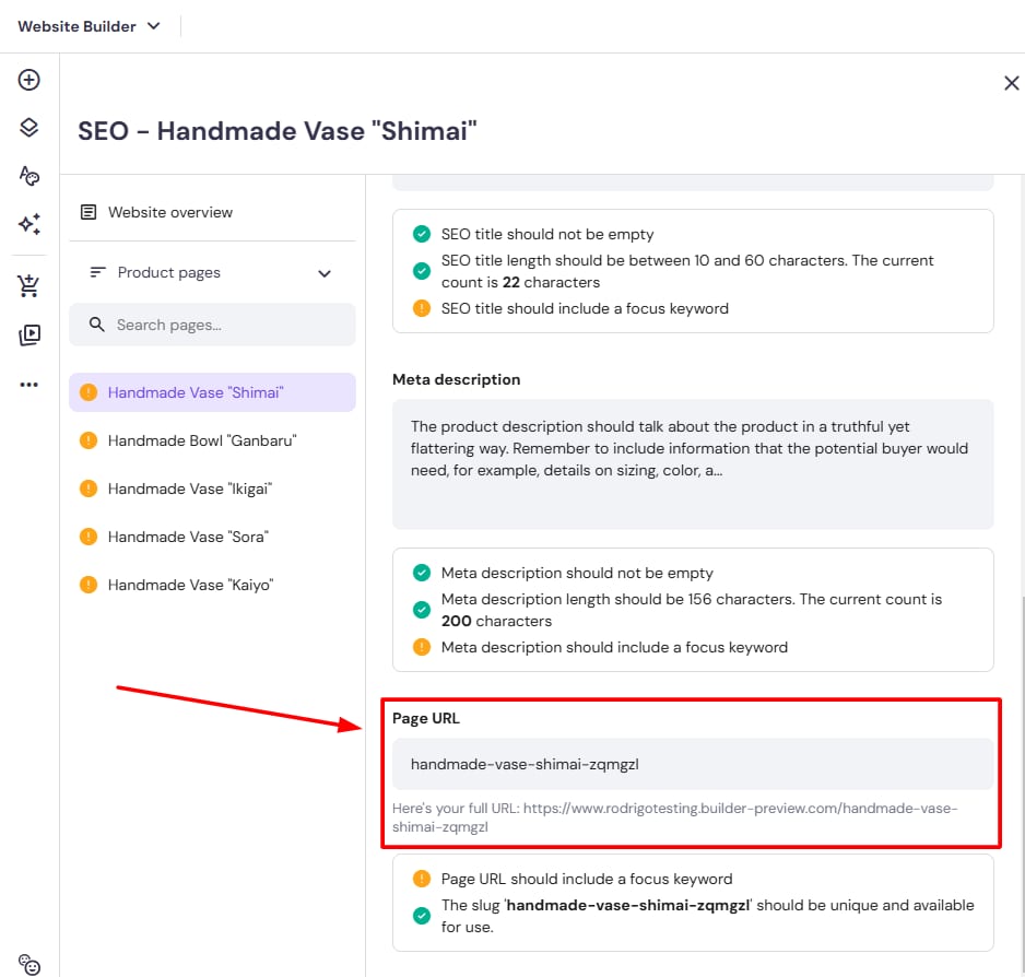 Inside Hostinger Website Builder, you are able to set individual URL links for each product that you already have created inside your Online Store.