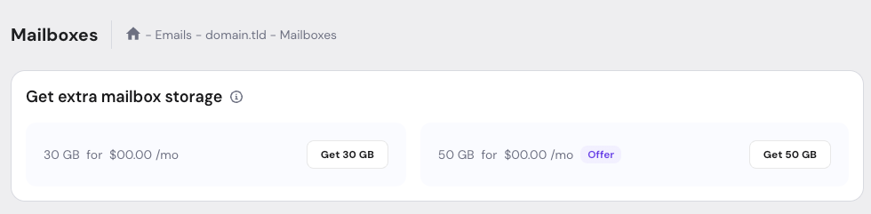 If you only need additional storage for one or a few mailboxes, you can use the Hostinger Email Storage Add-on instead.