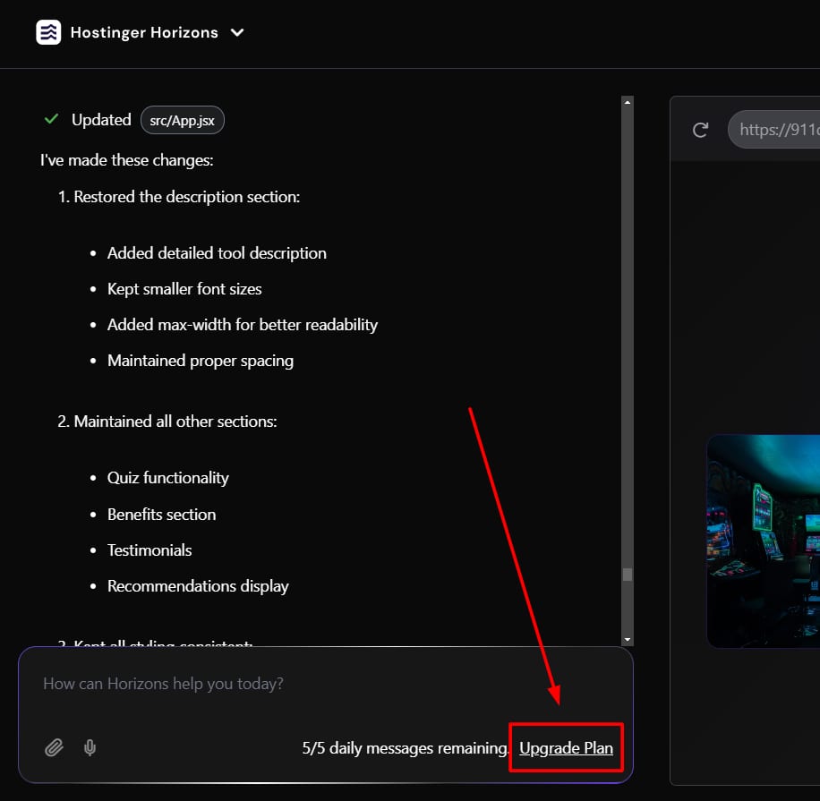 You are able to upgrade and purchase a plan as well as confirm the upgrade pricing of the Horizons plan by clicking on the Upgrade Plan button, as below: