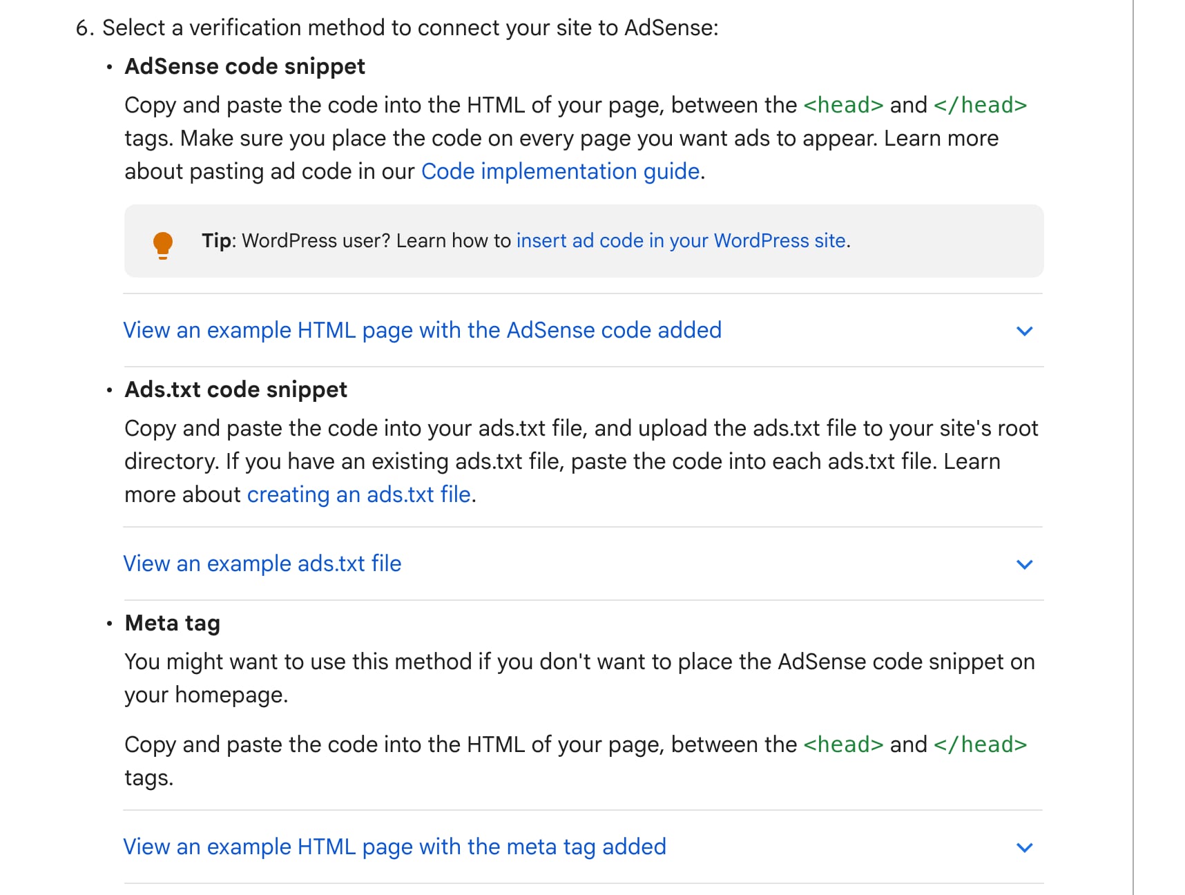 To connect to AdSense, first you need to verify the domain ownership. There are multiple ways how to verify web app ownership when connecting to AdSense, as below: