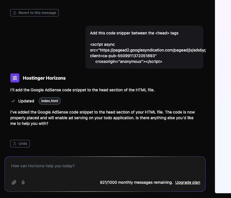 The easiest one would be to add the code snippet provided from AdSense directly to your WebApp. You can write the prompt such as: