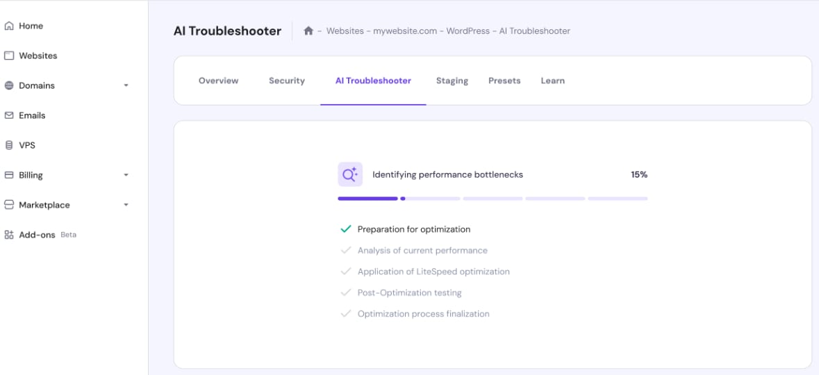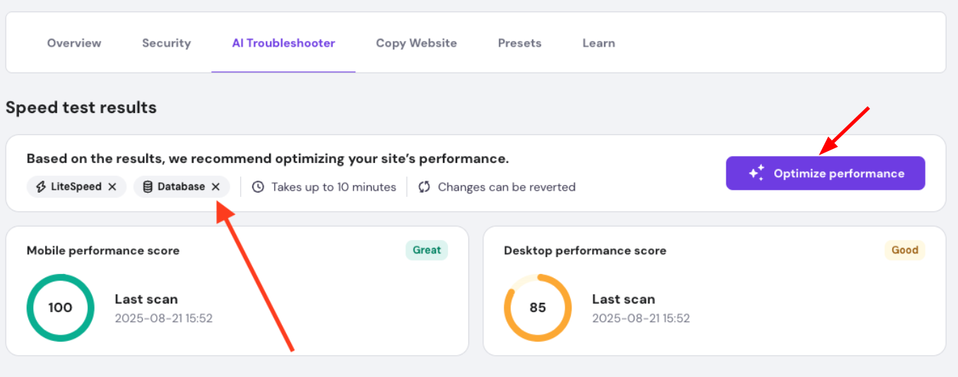 The AI Website Troubleshooter now includes a new feature called AI Website Optimizations, which helps improve the performance of your WordPress websites.