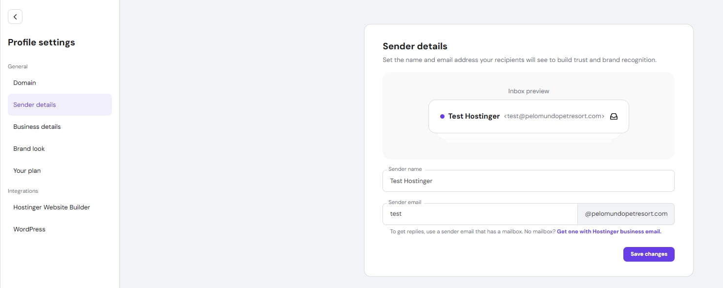 Update the sender’s email address, if needed. Note: If you’d like to get replies from your subscribers, use a sender email that has a mailbox. You can get an email plan and set up an email at Hostinger.