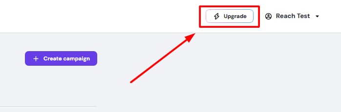 To upgrade your plan to a paid version, you would need to click on the top-right corner inside your Reach dashboard on your profile name, as shown below: