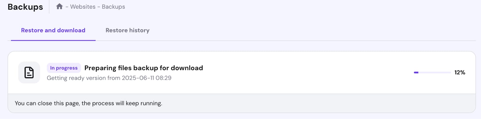 Learn how to quickly download your website or database backups from the hPanel section of your Agency plan.
