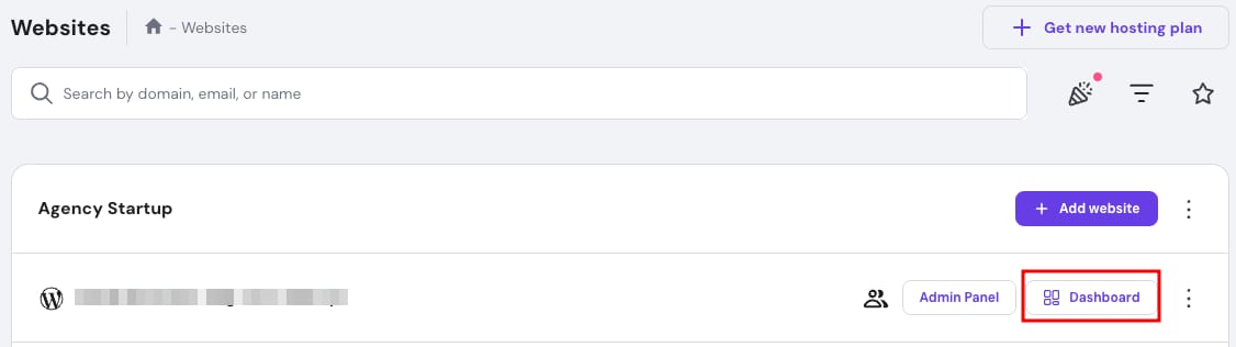 Step 1 – Go to the Websites section on hPanel and click on Dashboard next to the website in question: