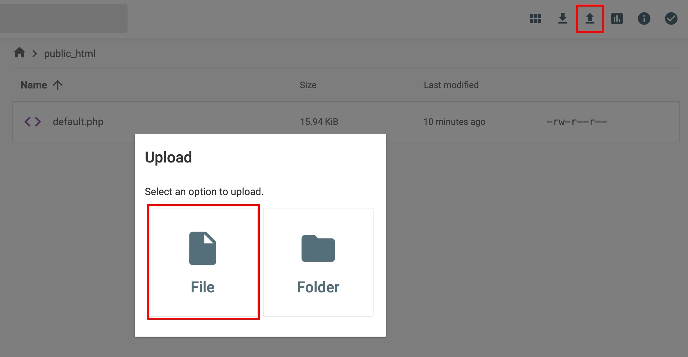 Click the Upload Files icon at the top-right.