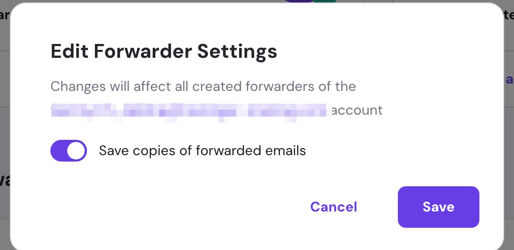 To keep a duplicate of the messages on the original account, leave the Save copies of forwarded emails toggle on. Otherwise, click on it to disable it – all the messages will be automatically deleted from the original account after being forwarded.