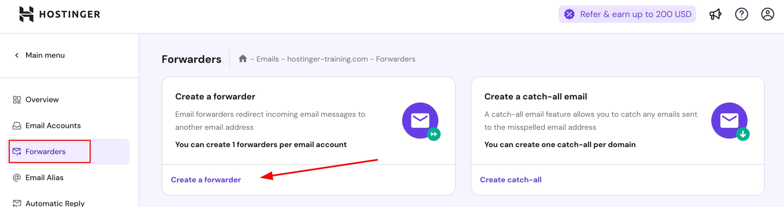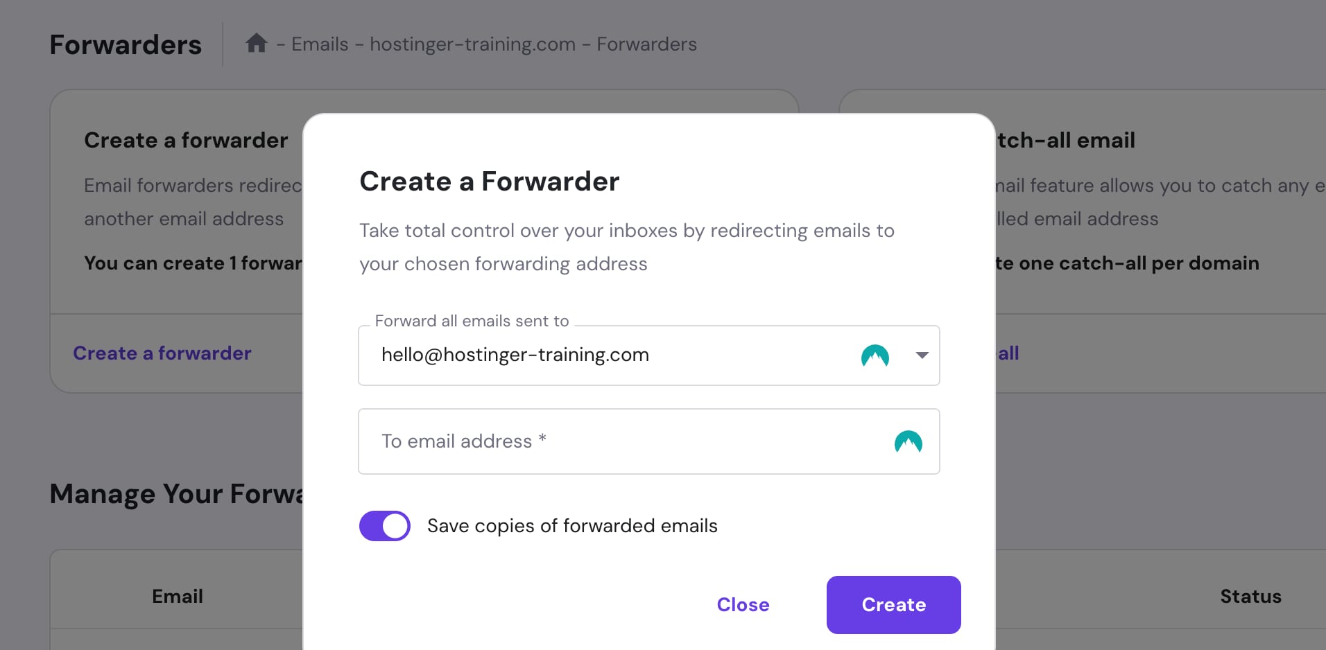 If you are using Hostinger Email, you can create two different types of forwarders: